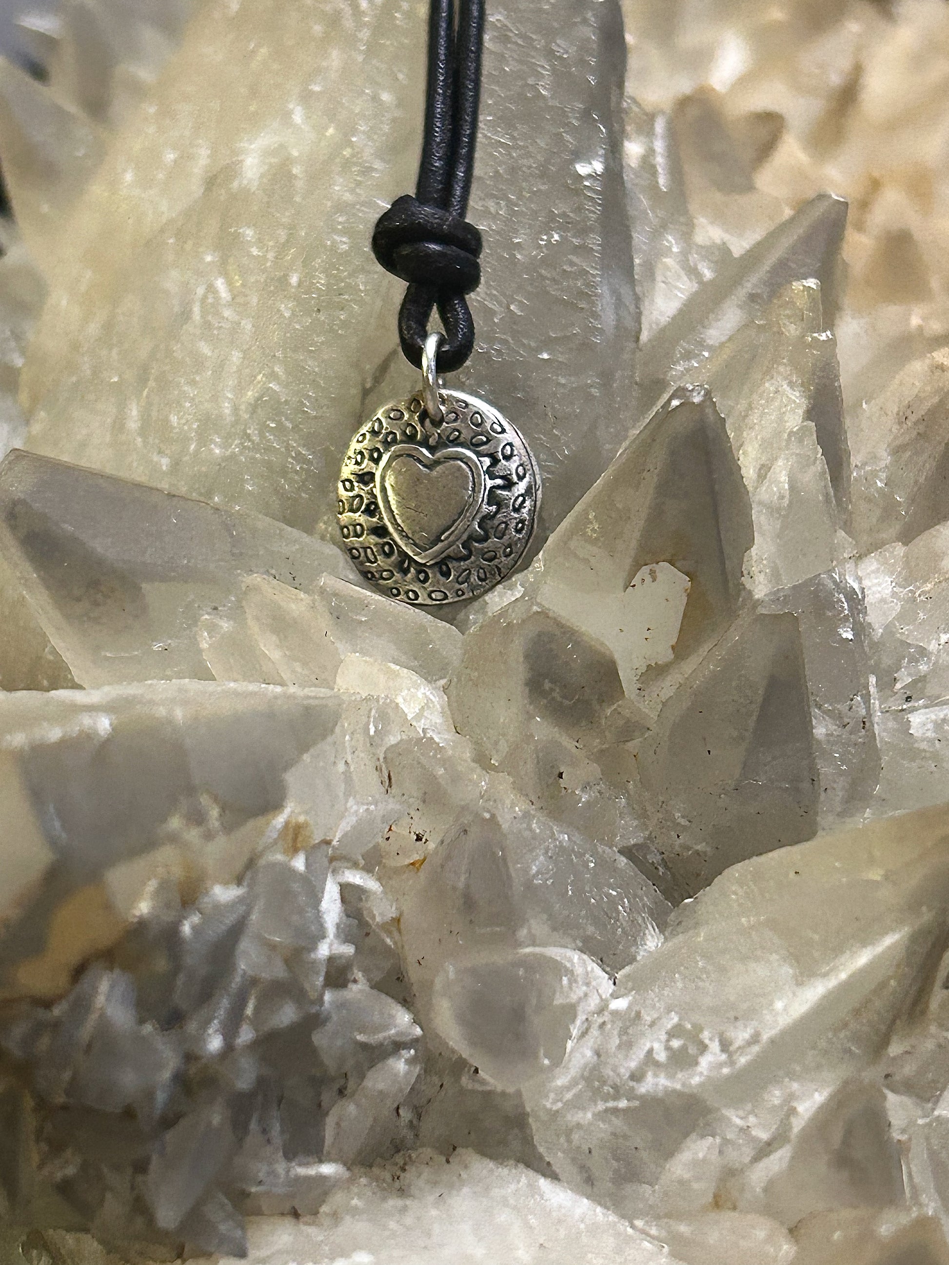Leather necklace with fine silver heart