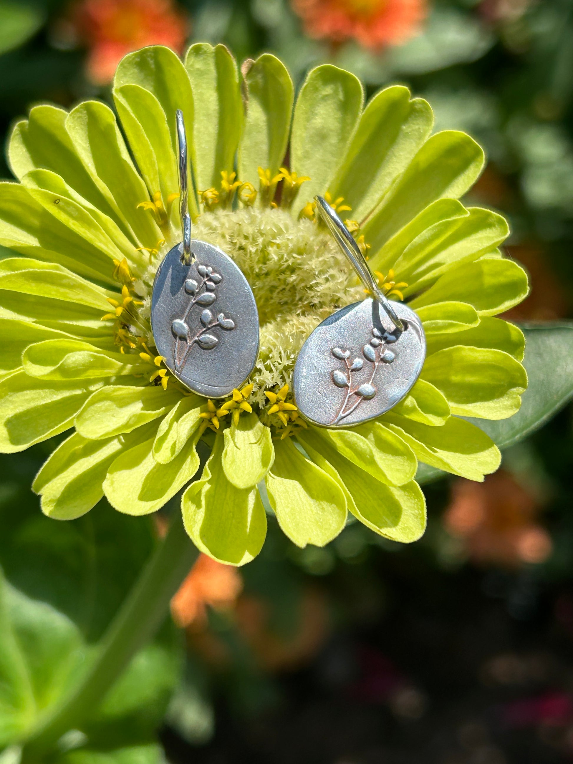 These pure silver earrings showcase a delicate raised floral motif, adding a whisper of nature-inspired beauty to your ensemble. Ideal for everyday elegance or special occasions.