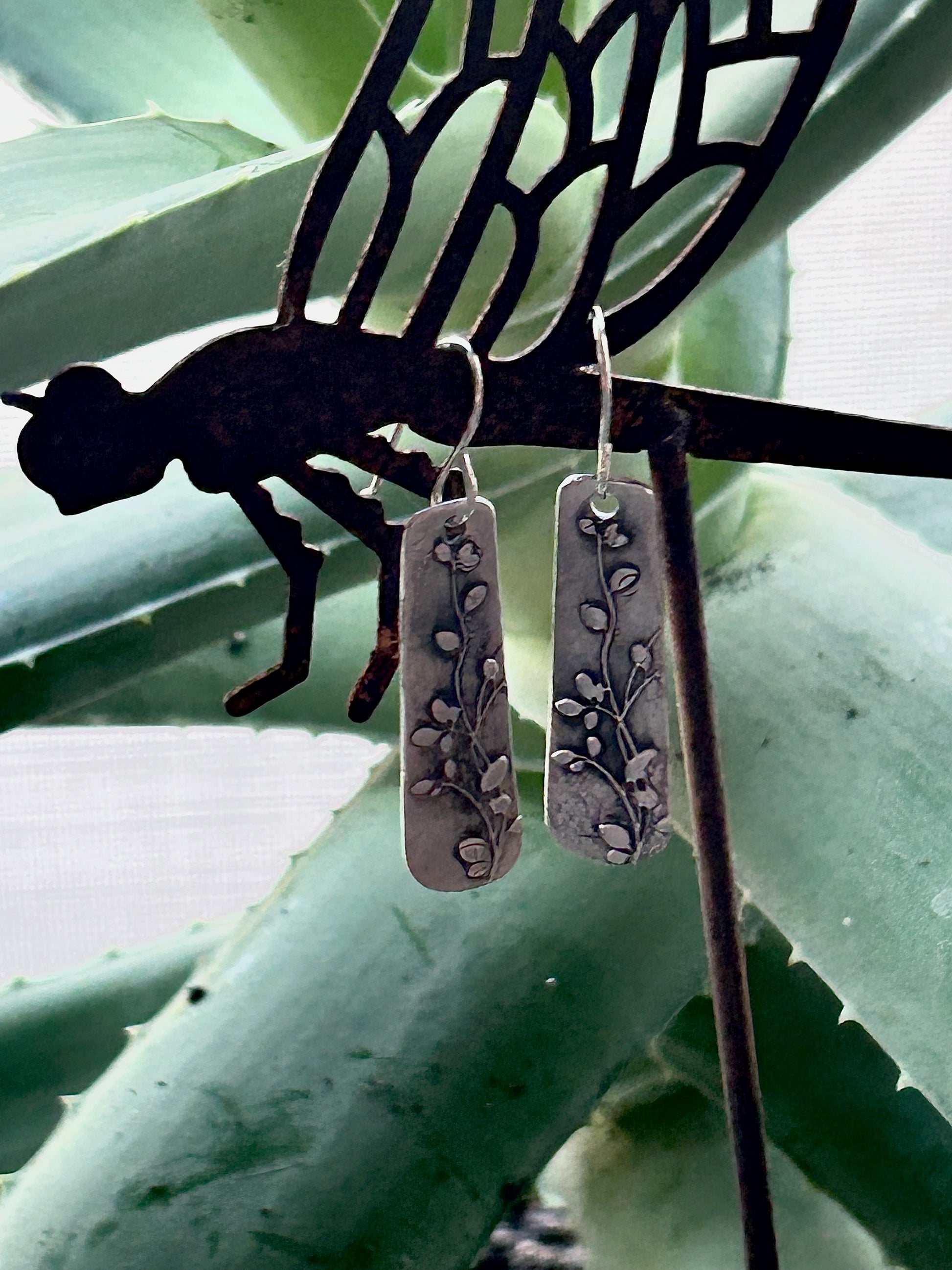 Fine Silver Botanical Rectangle Earrings