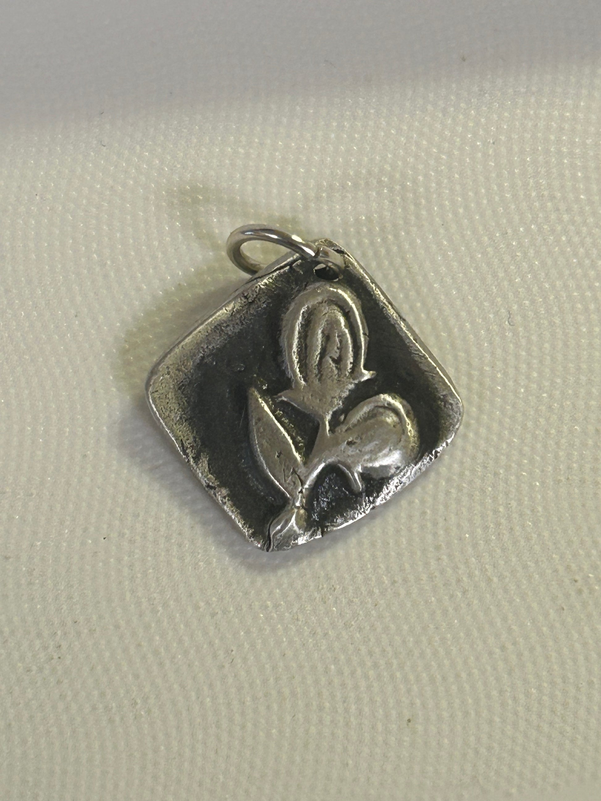 This fine silver pendant features a beautifully crafted organic flower design with detailed petals. Its simple and natural look makes it a perfect accessory for everyday wear. fine silver pendant features an organic crafted flower design with detailed petals.